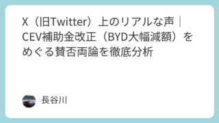 その他・雑談 X(旧Twitter)上のリアルな声|CEV補助金改正(BYD大幅減額)をめぐる賛否両論を徹底分析