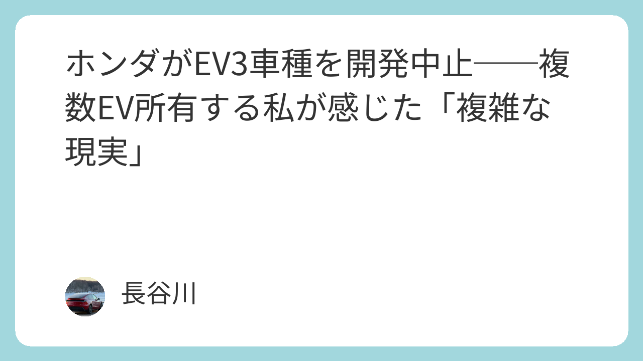 これは小さいようで、決して軽くない変化だ。口コミや人への推薦がEV普及の重要な経路であることを考えると、オーナー・関心者のあいだでの「ホンダEVは推奨しにくい」という空気は、じわじわと普及の足を引っ張る。