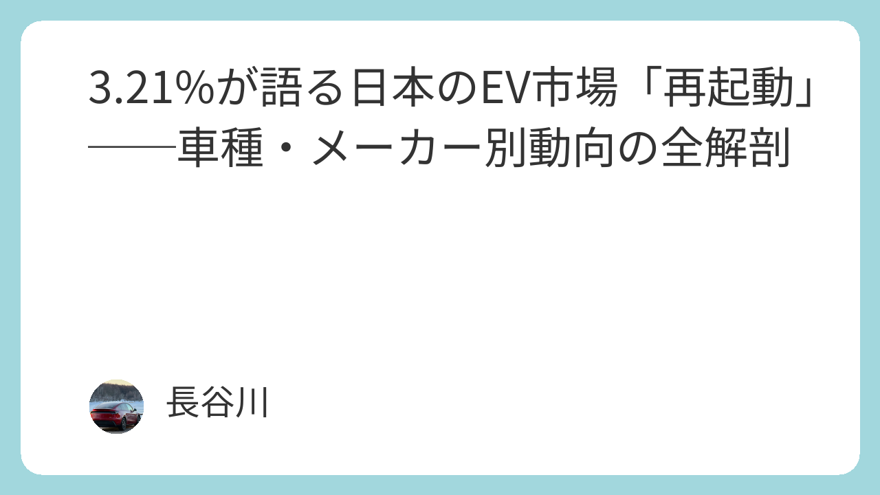 3.21%という数字は、単体では小さく見えるかもしれない。だが4台のEVを所有しながら市場を観察してきた肌感覚で言えば、モメンタムは明らかに変わっている。