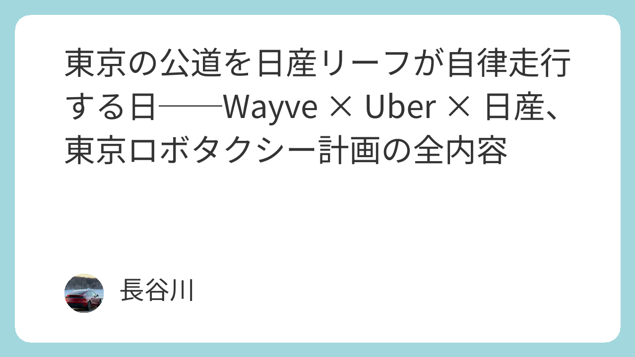 東京の公道を日産リーフが自律走行する日──Wayve × Uber × 日産、東京ロボタクシー計画の全内容
