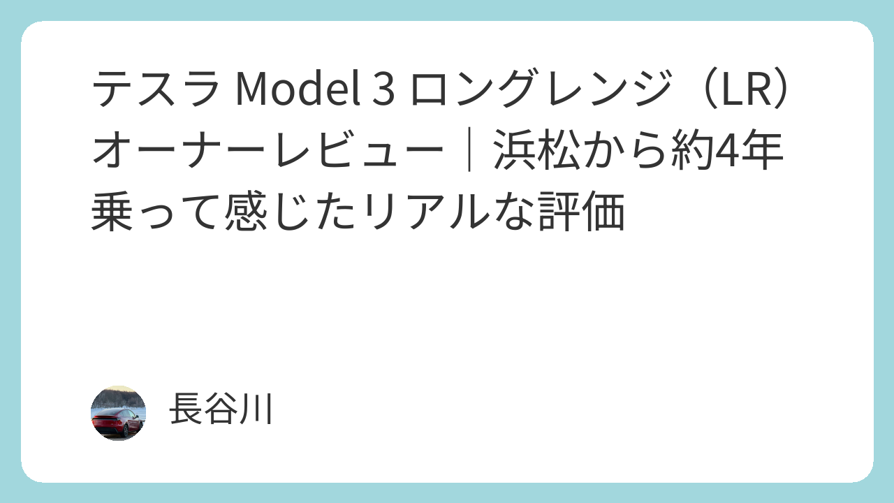 著者:長谷川 現在の所有車:Tesla Model 3 LR / Tesla Model Y / Hyundai KONA Electric / 日産サクラ